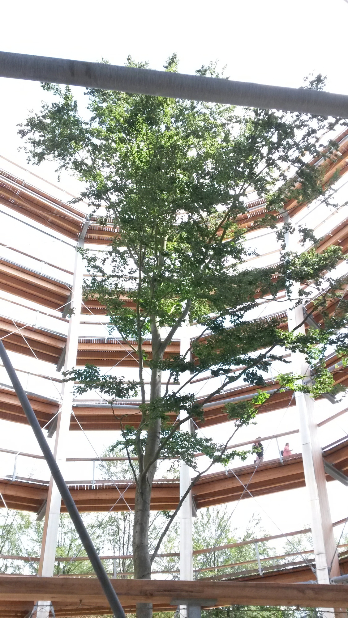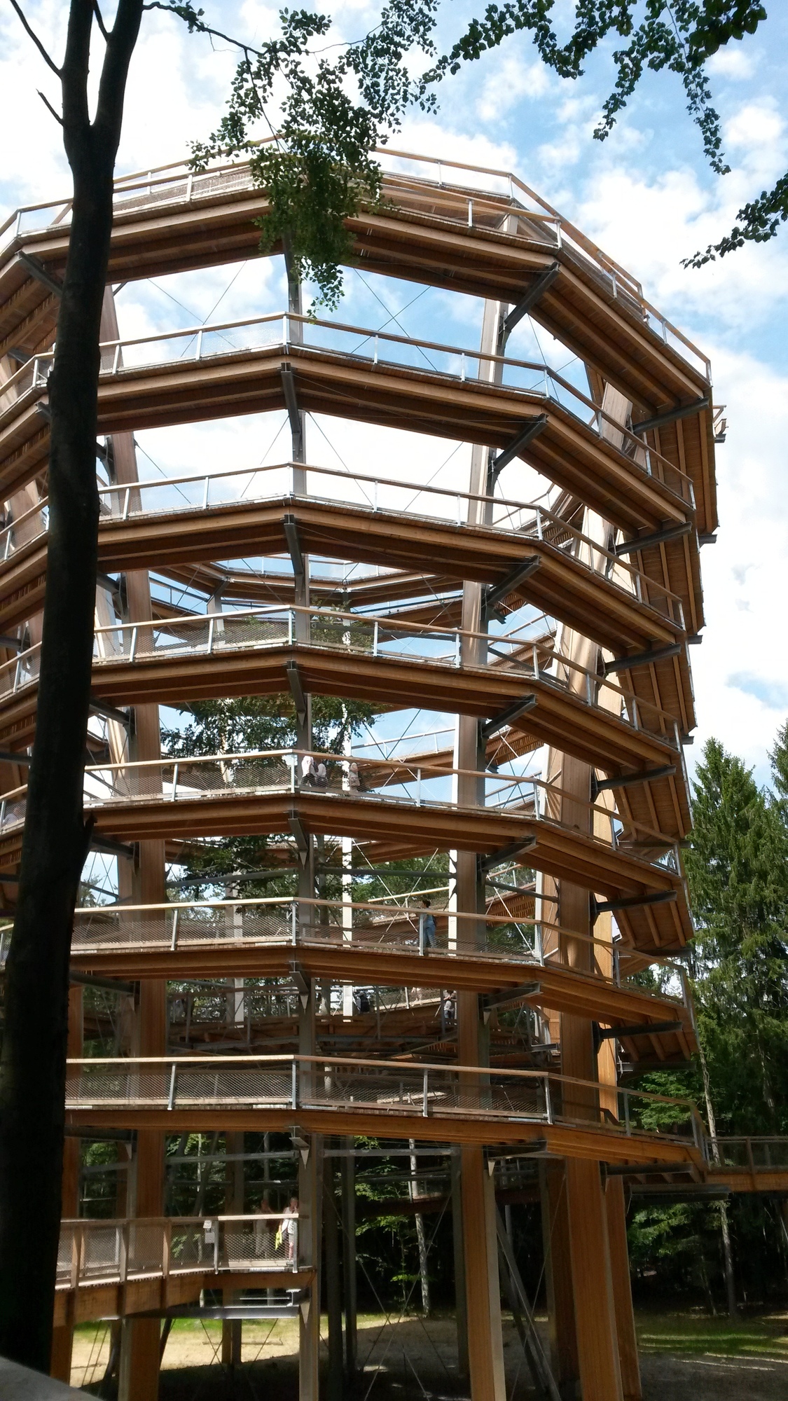Meist in den Baumkronen verlaufend, bietet der Pfad neue Eindrücke rund um den Lebensraum Wald. Auf über einem Kilometer Länge sind eine ganze Reihe von Perspektivwechseln erlebbar, nicht nur beim Aufstieg auf den sich nach oben öffnenden kelchförmigen Holzturm. Der Pfad windet sich an der Außenseite des Turms hinauf zu einem kreisförmigen Umgang auf oberster Ebene (42 m). Dort genießt man den Rundumblick über die waldreiche Landschaft des Steigerwaldes und auch eine frische Brise.