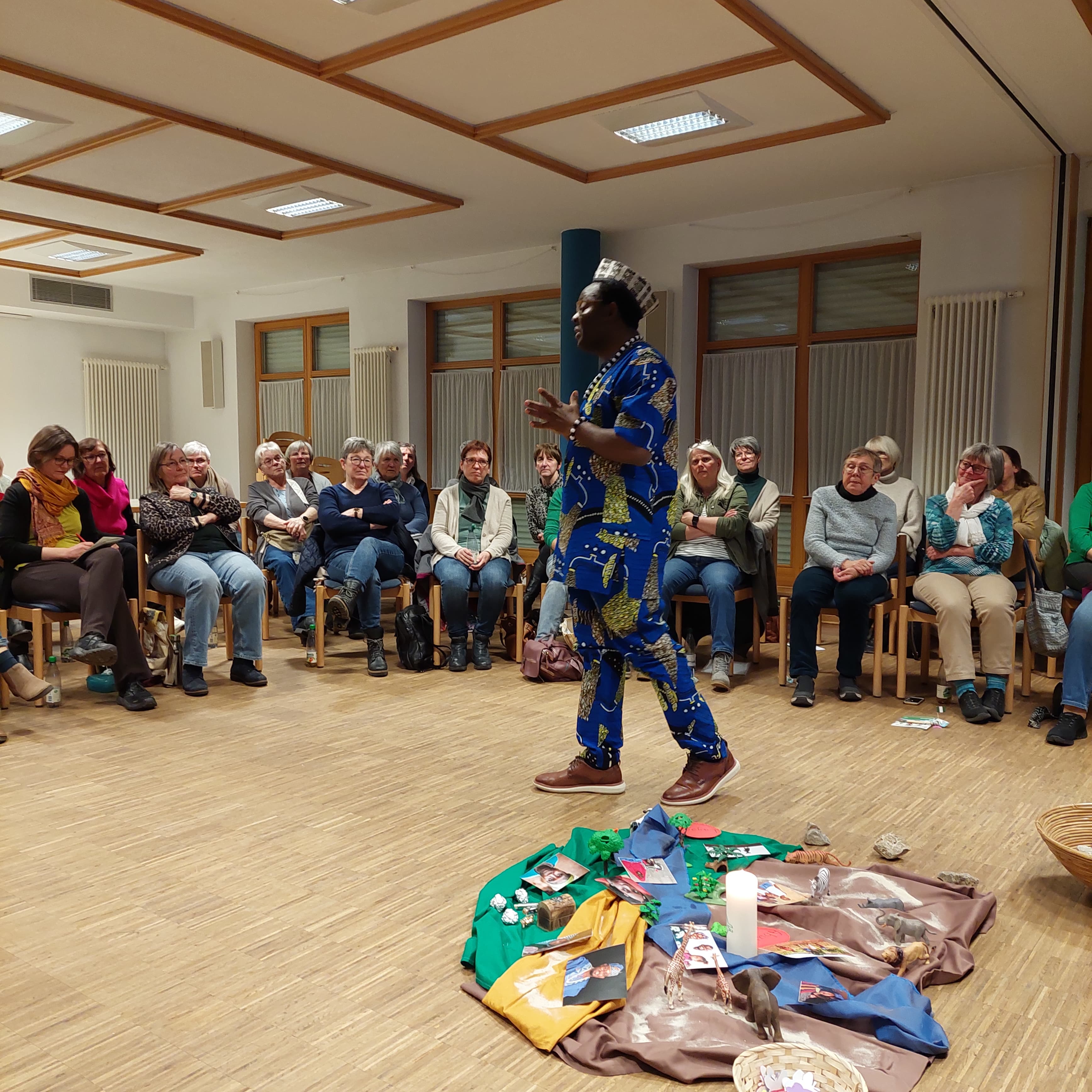 Ein besonderes Highlight war der Beitrag von Pfarrer Dr. Blaise Okpanachi, der nicht nur aus seiner Heimat berichtete, sondern auch ein traditionelles nigerianisches Gewand präsentierte. Ergänzt wurden die Informationen durch erzählte Geschichten und Videos, tänzerische Elemente sowie Gebet und Segen in seiner Muttersprache.