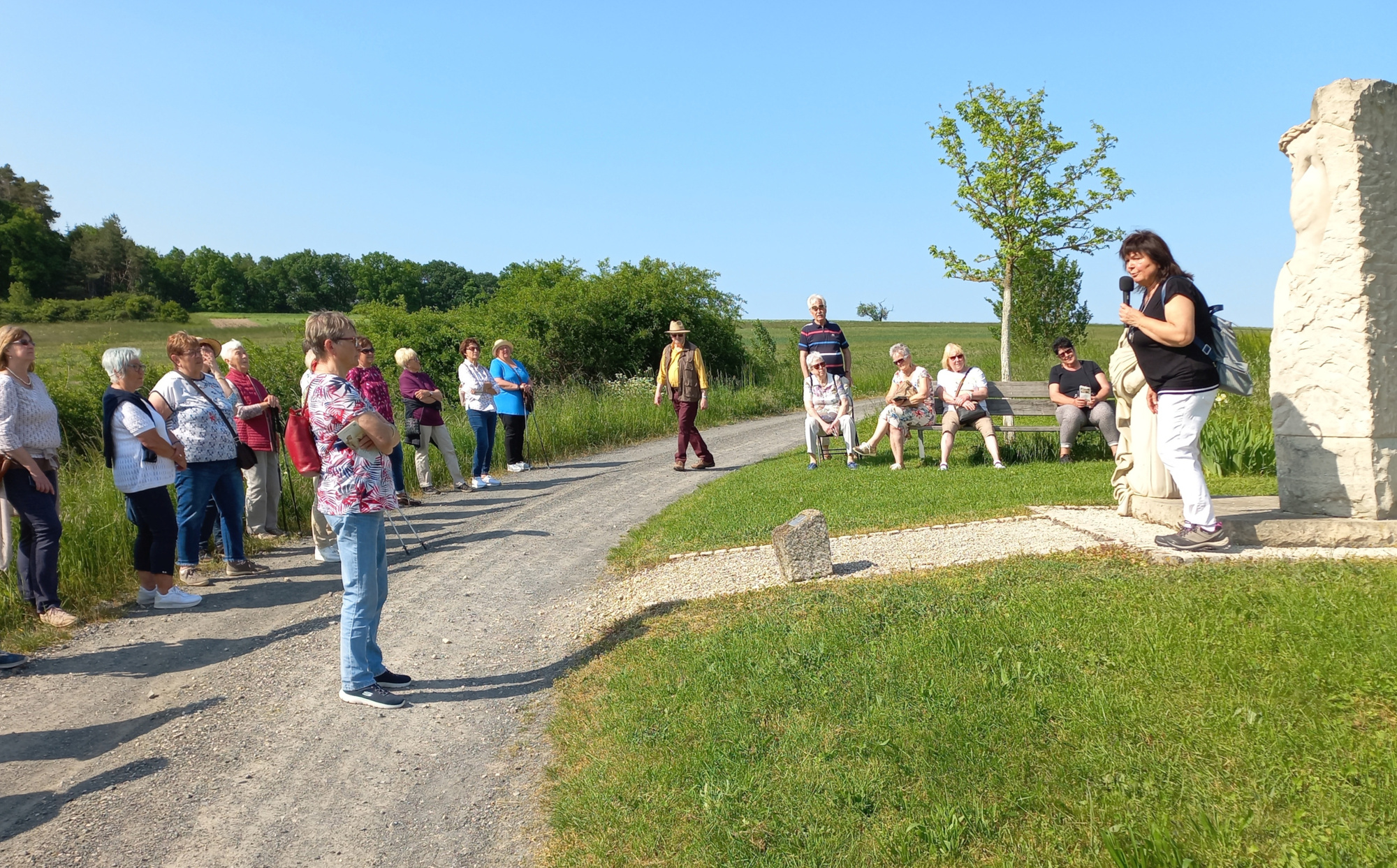 Aus dem ganzen Dekanat Haßberge trafen sich 36 Seniorinnen und Senioren in Breitbrunn. Auch wenn einige den Kreuzweg schon kannten, so war die Führung durch Gertrud Bühl doch ein besonders Erlebnis. Als ehemalige Bürgermeisterin des Ortes war sie nicht nur die Initiatorin des Kreuzwegs, sondern konnte durch den engen Kontakt mit der Schweinfurter Künstlerin Steff Bauer, die die Stationen von 2009 bis 2011 schuf, zahlreiche interessante Informationen aus erster Hand geben.