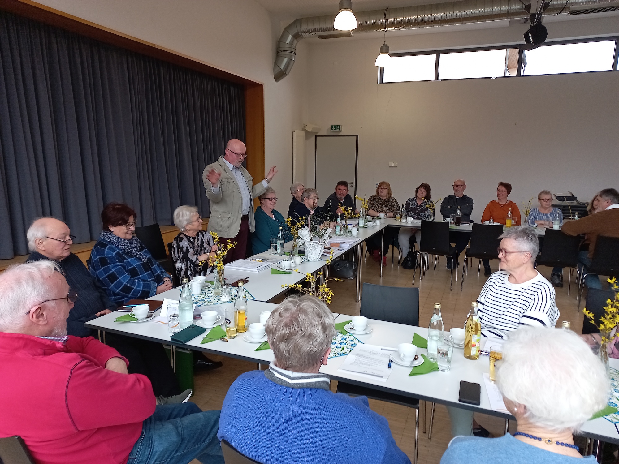Nach der Begrüßung durch Rudi Langer, der die Veranstaltung leitete, ging Diakon Joachim Stapf in einer kurzen Besinnung der Frage nach: „Mensch, wo bist du?“. Vor allem in seiner Arbeit als Notfallseelsorger empfindet er immer wieder Ostern als „ein Geschenk des Lichts im Dunkeln“.
