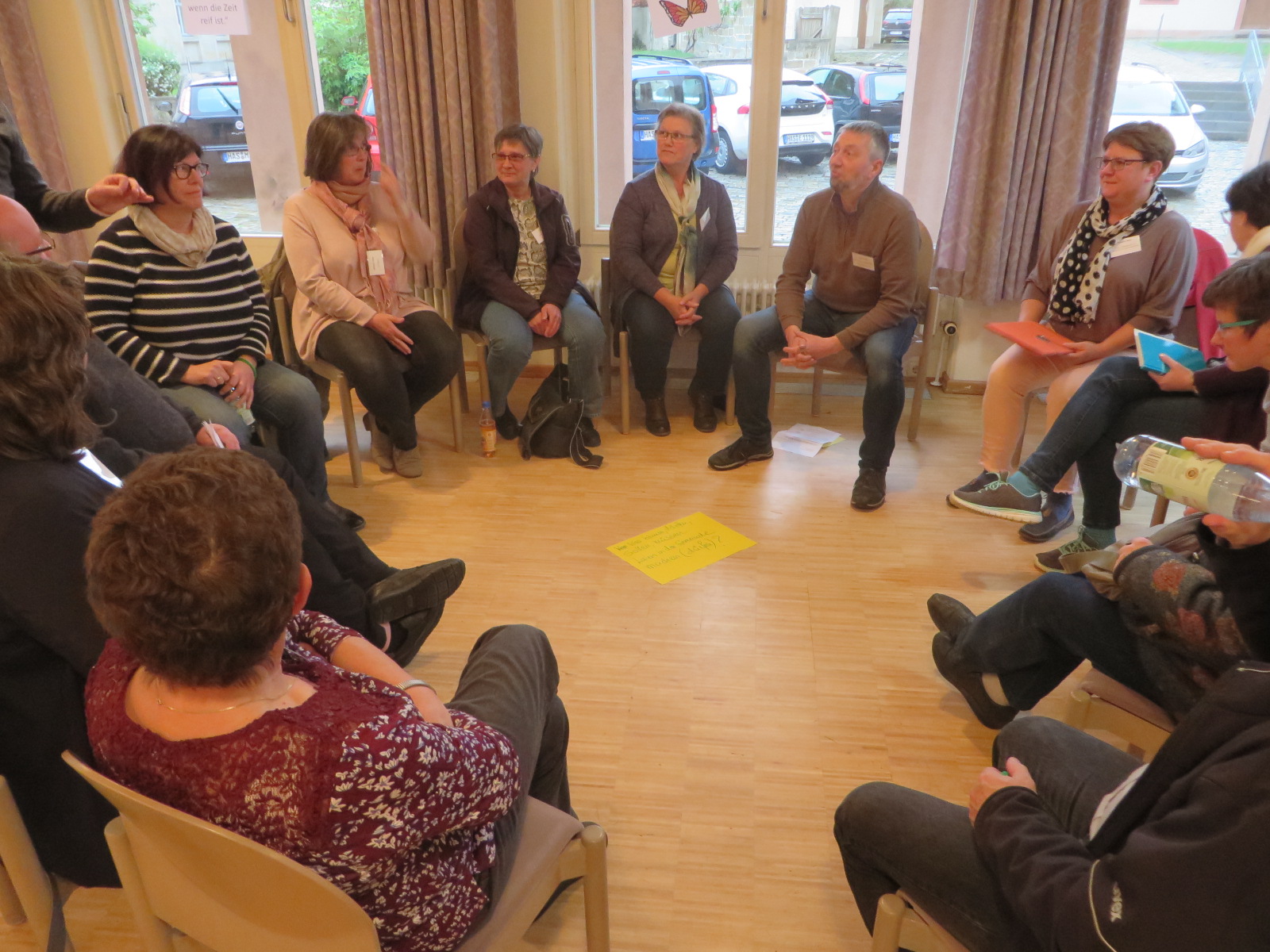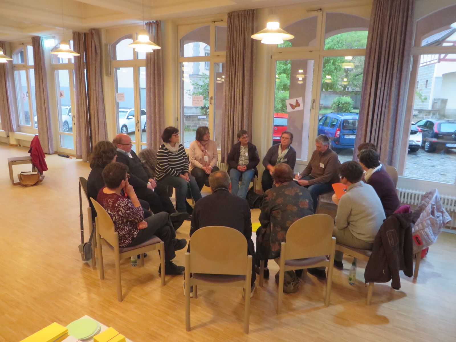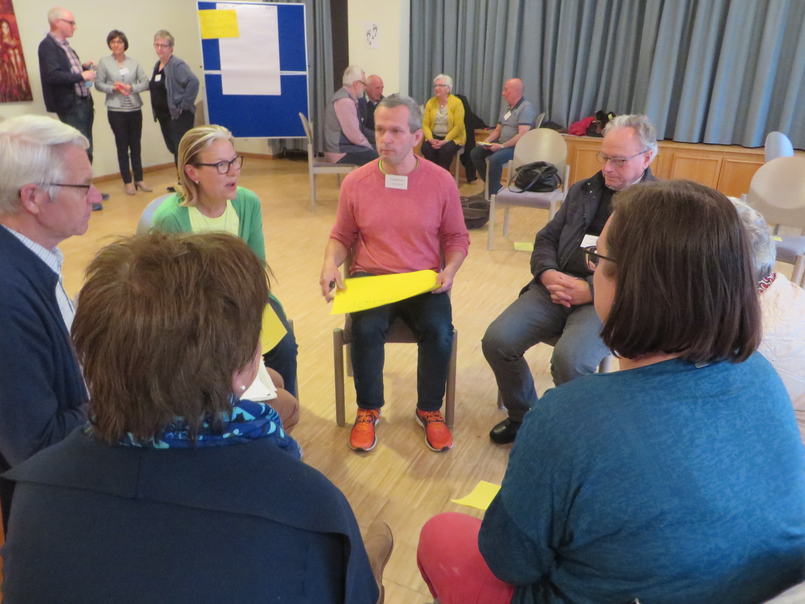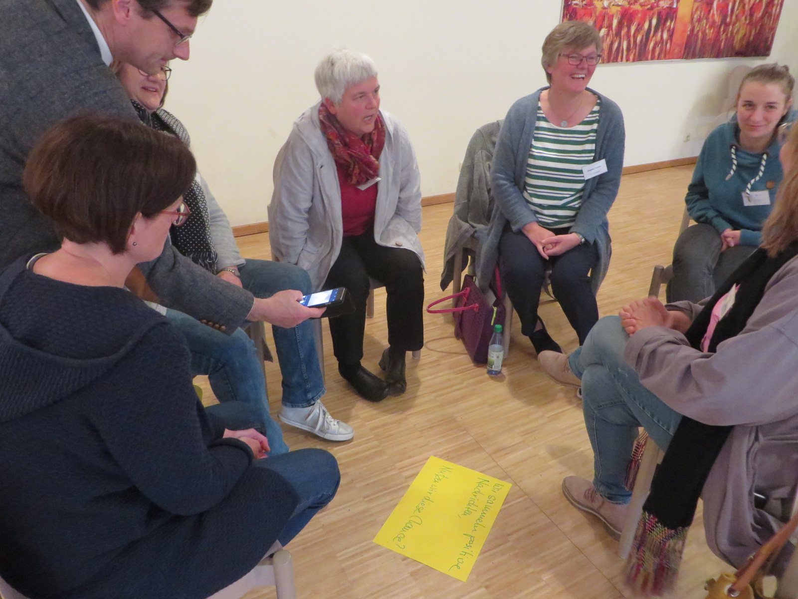 Unter der Überschrift "Wir werden konkret" lud die Vorstandschaft zu einem „Open Space“ ein. Vertreter des Gremiums brachten Wünsche und Anregungen ein, die anschließend in offenen Runden bearbeitet wurden. Die Teilnehmer konnten sich an dem Thema einbringen, das sie am meisten ansprach, wofür er oder sie "brennt". Diese Methode ermöglichte ein kreatives und konstruktives Arbeiten, "Wir wollen nicht auf das sehen, was alles getan werden muss, sondern auf das, wo für uns Energie drin ist.", so Klaudia Schwarz, Dekanatsratsvorsitzende. So ging es in einer Themengruppe um positive Erfahrungen in den Gemeinden und um die Frage, wie dies bestärkt werden kann. Eine andere Gruppe setzte sich damit auseinander, wie den Jugendlichen stärker Raum in den Gemeinden erhalten können. In insgesamt 6 Gruppen bearbeiteten die Delegierten in der sehr gut besuchten Vollversammlung ihre Themen. Ihnen ist es ein Anliegen die Hauptamtlichen noch stärker mitzunehmen.